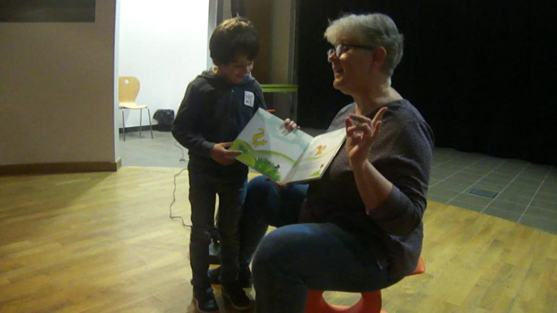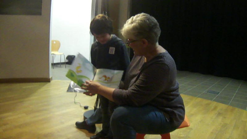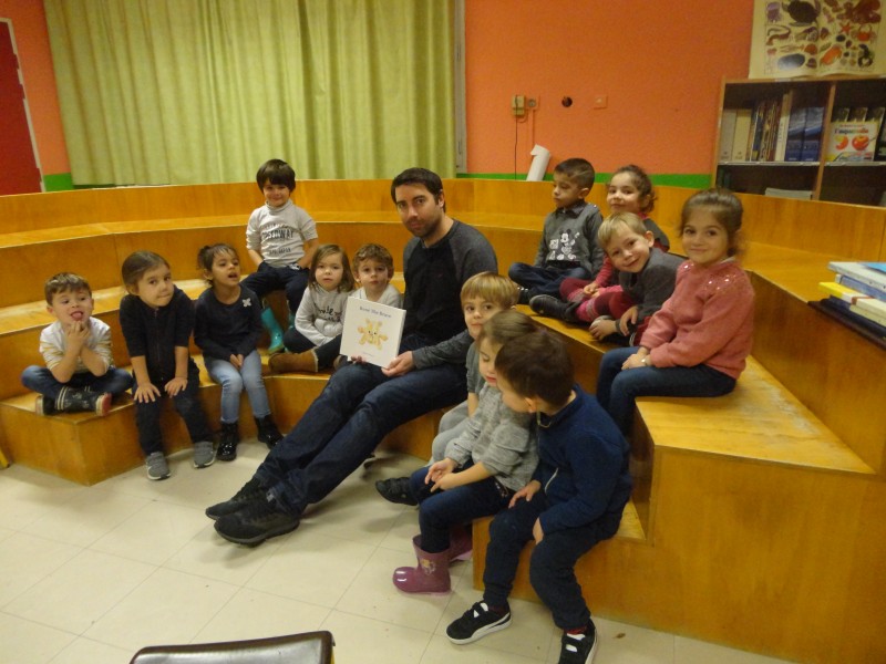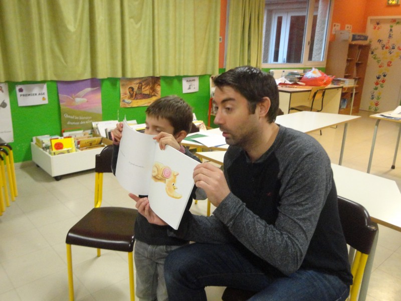 en co-lecture en anglais avec le papa d'ELIOT et en français avec la maîtresse, nous avons écouté une belle histoire dans la BCD de l'école.