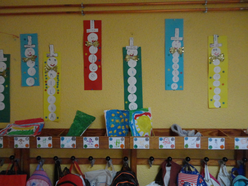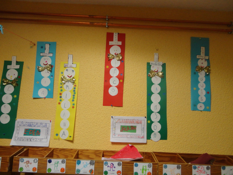 Les enfants ont réalisé chacun un bonhomme de neige en écrivant les lettres de leur prénom dans chaque rond pour vous souhaiter une belle et heureuse année.