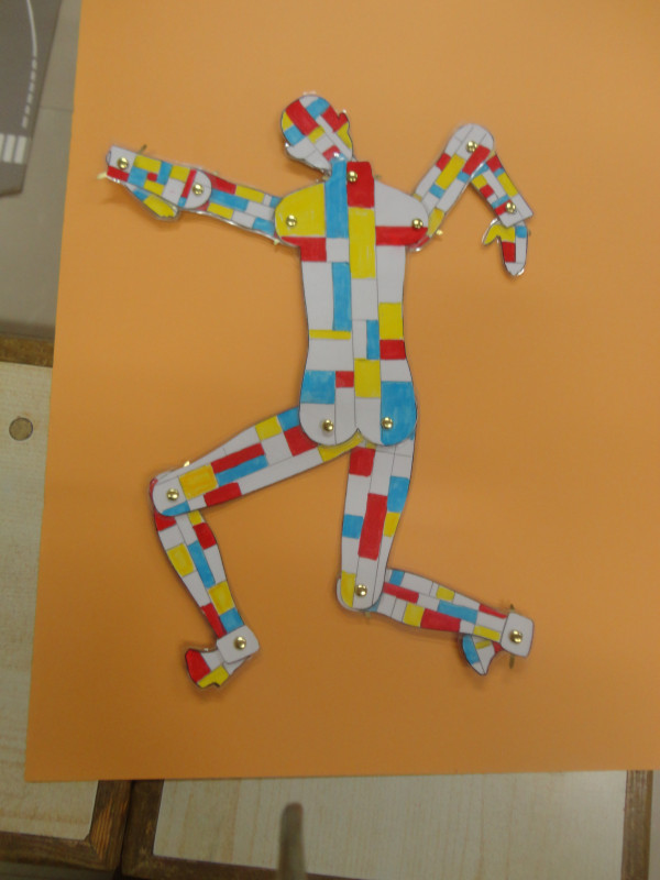 Les enfants par groupe de couleur ont réalisé un pantin à la manière de Mondrian.