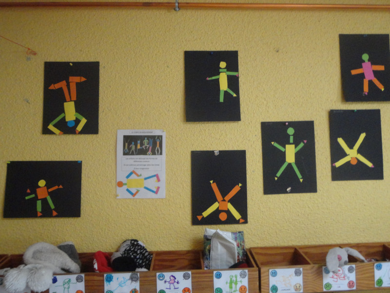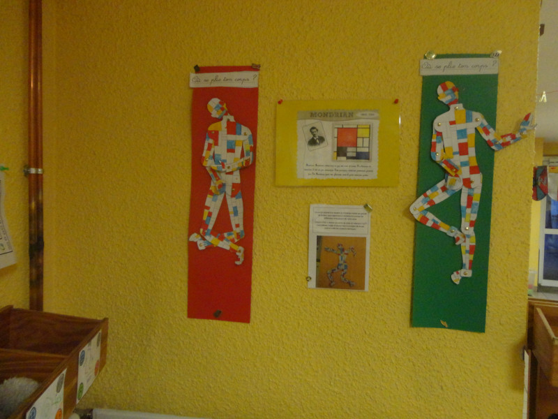 Pour apprendre à nommer et identifier les articualtions, chaque enfant à colorier une partie du corps en n'utilisant simplement que trois couleurs, du rouge, du jaune et du bleu.