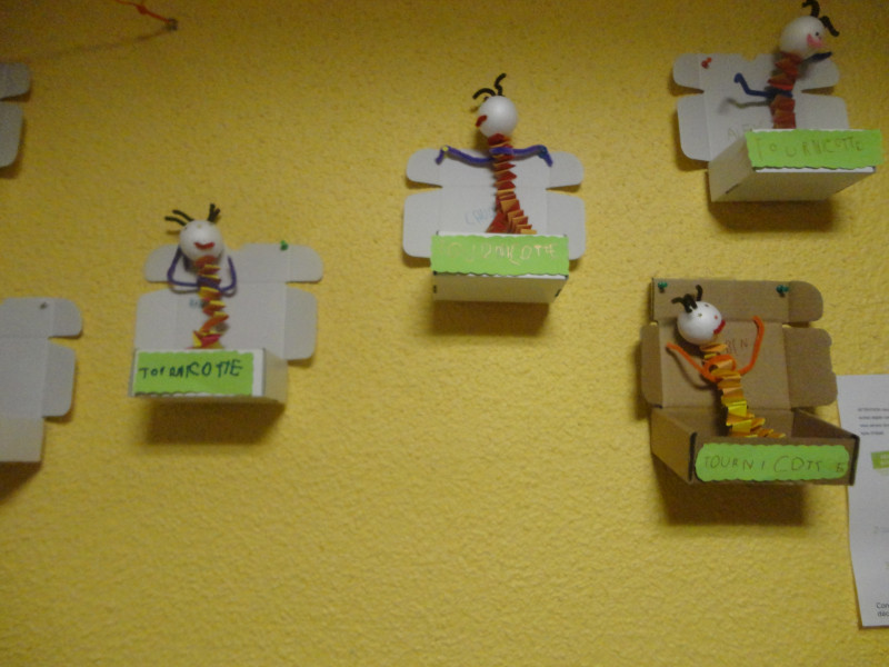 Chaque enfant a réalisé avec beaucoup de plaisir et d'application sa petite Tournicotte; avec du pliage, du collage, les petites poupées sont venues égayer notre couloir.