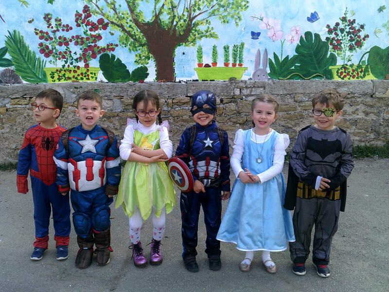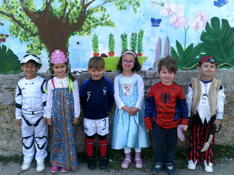 Sous un soleil printanier, les enfants avaient revêtu de jolis costumes variés et colorés; de princesses, en super héros, de cocinelle en petite russse, chacun paradait dans sa belle tenue.