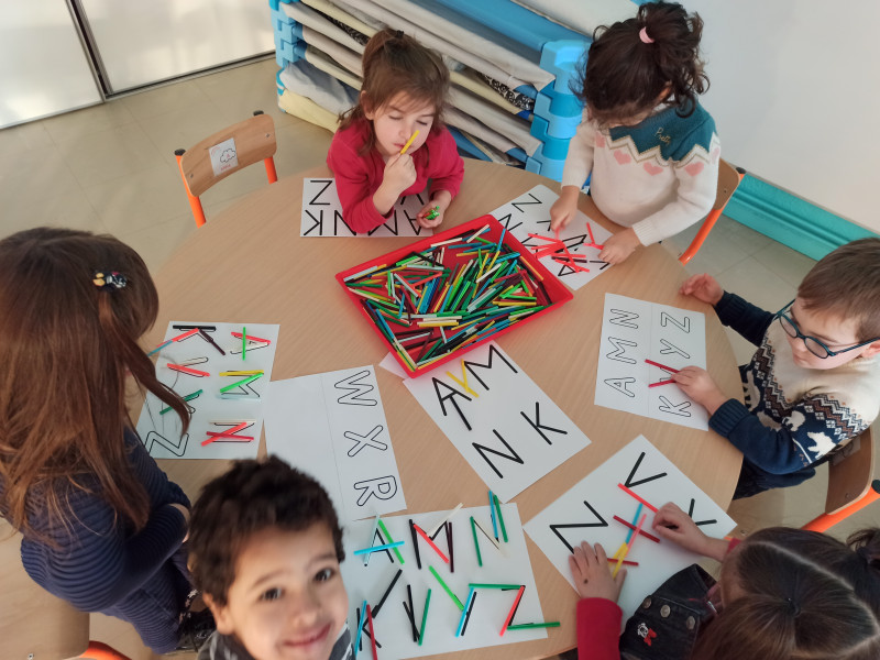 nous avançons dans nos apprentissages évidemment entre manipulation, jeux, arts, etc.