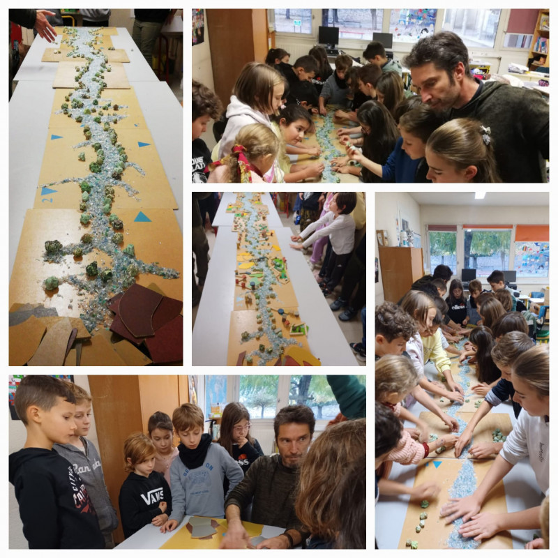 Une maquette de rivière avec notre intervenant sciences!